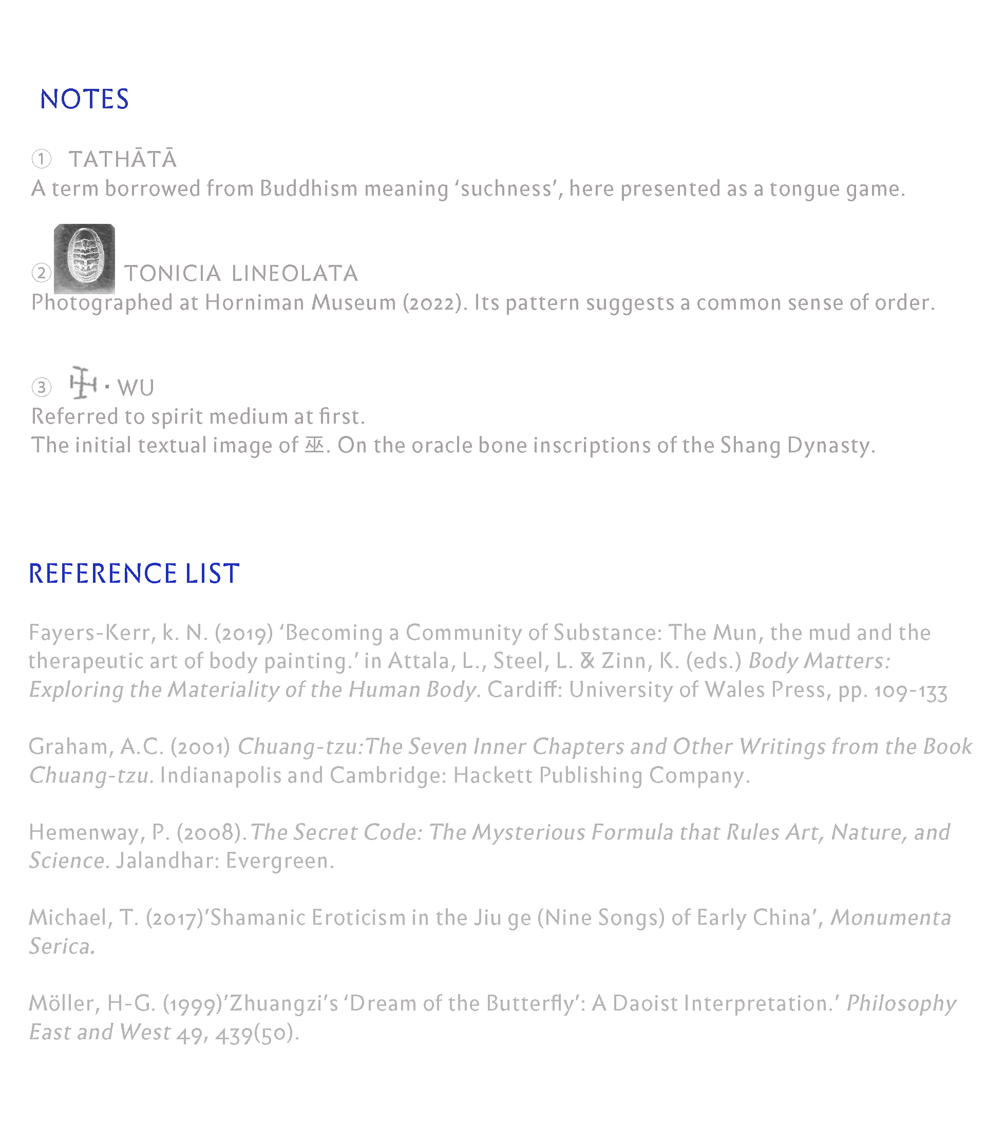This embodies a key modality in my practice: a fascination for exploring dynamics of cyclical activations within the everyday, relating with our biological survival. This has continued to guide me towards the realms of the intimate, somatic, sensuous and body-centred ‘re/skilling’, as both practical and poetic modalities for exploring belonging and healing - or rather, ‘harm reduction’ (Kinnunen 2021) for alienated bodies, as well as quieter modes of resistance in the face of geopolitical issues and environmental crises.